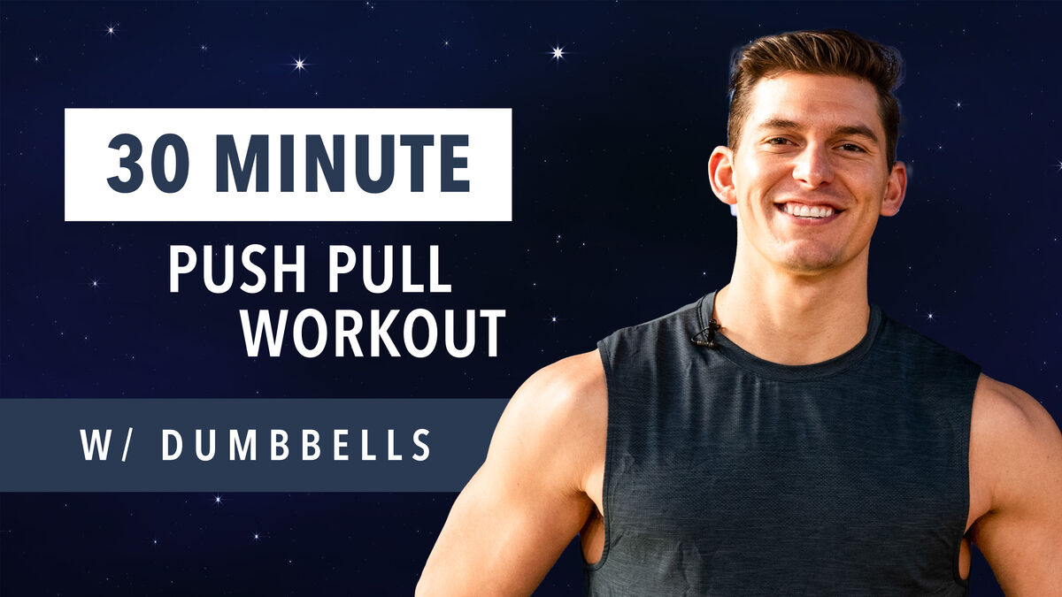 This 30-minute full-body strength workout with dumbbells features a variety of push-pull exercises, targeting both the front and back sides of your body for a balanced and effective session!